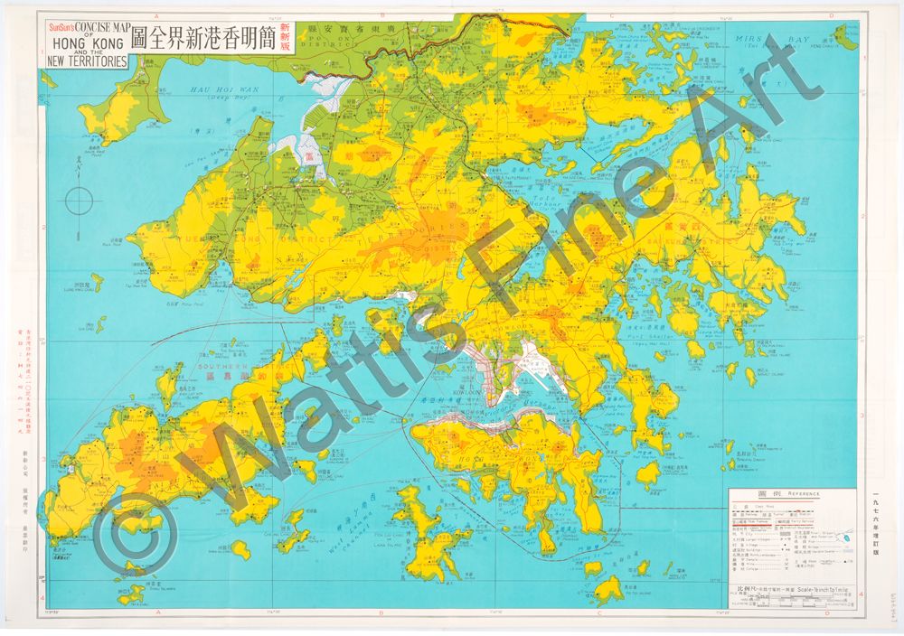 Verso are four plans of the new towns of Yuen Long, Tsuen Wan and Kwai Chung, Tai Po and Shek Wu Hui.