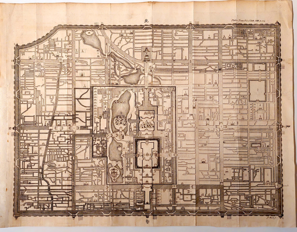A folding plan of Peking 1758. J. Mynde sculp. Philos. Trans. Vol. L. Tab. XXIV. p.704.