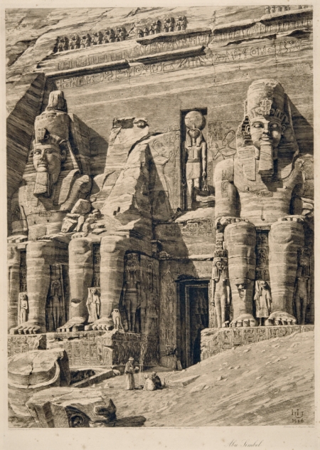 A beautiful large etching made in 1906 of Abu Simbel, a temple in Egypt. The original etching by H. Ullrich. Printed by L. Angerer, Berlin. Published by Alfred Langewort, Breslau and Berlin- Registered 1906.