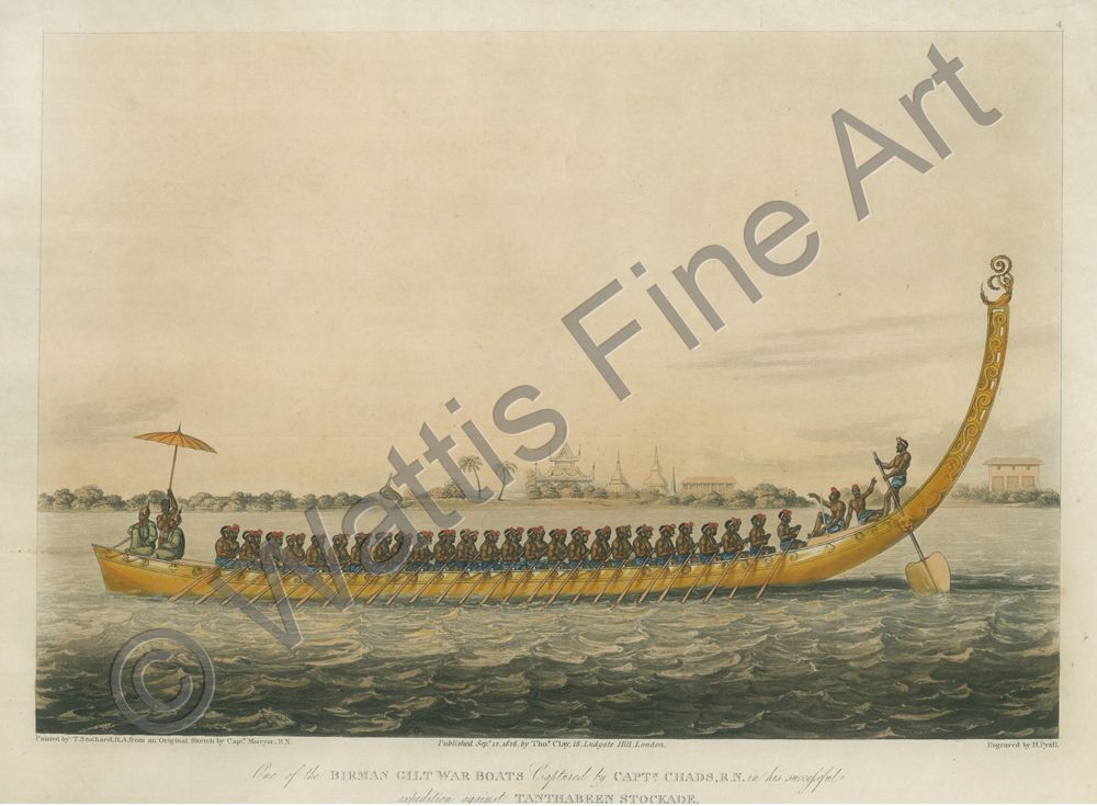 "Rangoon Views, and combined operations in the Birman Empire" by J. Moore and F. Marryat. was published in 2 series in 1825 and 1826. There were 18 aquatints in the original series 1 which retailed for 6 guineas.